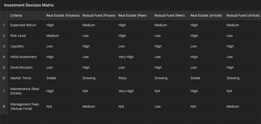 - Trick: Use a decision matrix. Let’s say you’re deciding whether to invest in real estate or a mutual fund. In the matrix, list pros and cons from different sources: financial advisors, articles, or peer opinions. Rank the advice based on credibility and relevance, which helps dilute any single biased source. It’s like comparing product reviews before buying that new gadget.